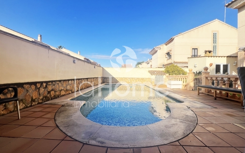 The exterior is one of the main attractions of this property, designed to be enjoyed all year round. It features a private pool with an outdoor shower, a gazebo area, and a solarium, perfect for family and friends gatherings. In addition, it has a traditional paellero with barbecue, a second fully equipped kitchen, and a laundry area. Several terraces complete this space, ideal for outdoor meals or relaxing moments.