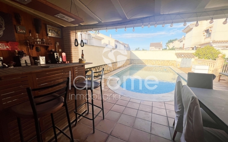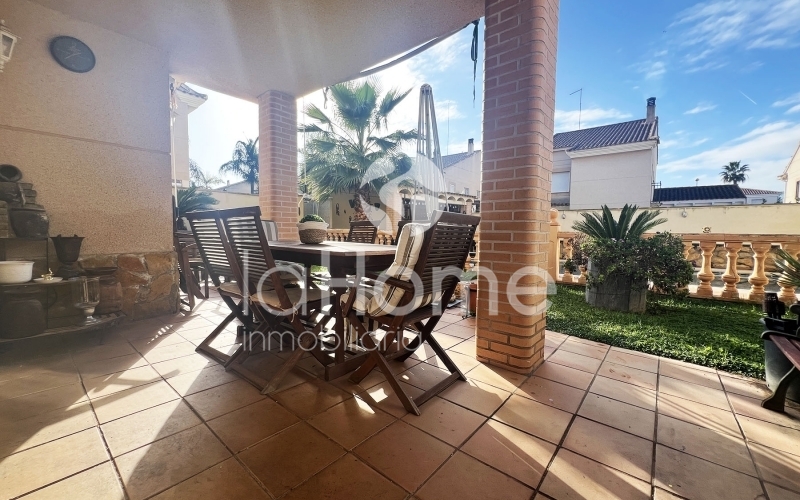 We present this beautiful detached chalet of approximately 210 m² built on a private plot of around 400 m², located in the sought-after Les Taules residential area, a quiet and well-maintained neighborhood just a few minutes from Valencia. A home designed to enjoy space, comfort, and the Mediterranean lifestyle, ideal for families seeking quality of life.