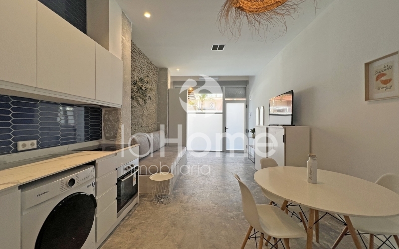 The modern design of the full bathroom and the attractive cement floor add a contemporary touch that doesn't go unnoticed. Furthermore, the double-glazed windows and high ceilings create an unparalleled feeling of spaciousness and light.