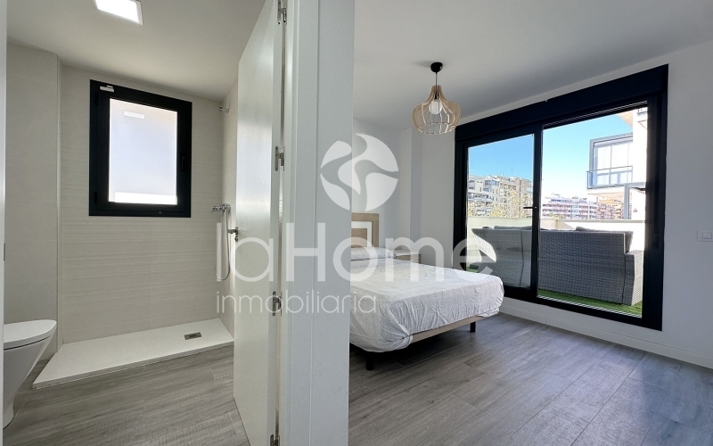 Esta luminosa vivienda ofrece una distribución cómoda y actual. Dispone de 3 dormitorios, uno de ellos doble con baño ensuite, además de un segundo baño completo para el uso de familia e invitados. La cocina abierta con vitrocerámica se integra en el salón, creando un espacio moderno y funcional. Entre sus calidades destacan las ventanas de aluminio, los suelos de gres porcelánico imitación parqué, la puerta de seguridad, el sistema de alarma y los armarios empotrados. Además, cuenta con una impresionante terraza de 60 m², perfecta para disfrutar al aire libre. La vivienda se vende amueblada perfecta para entrar a vivir.