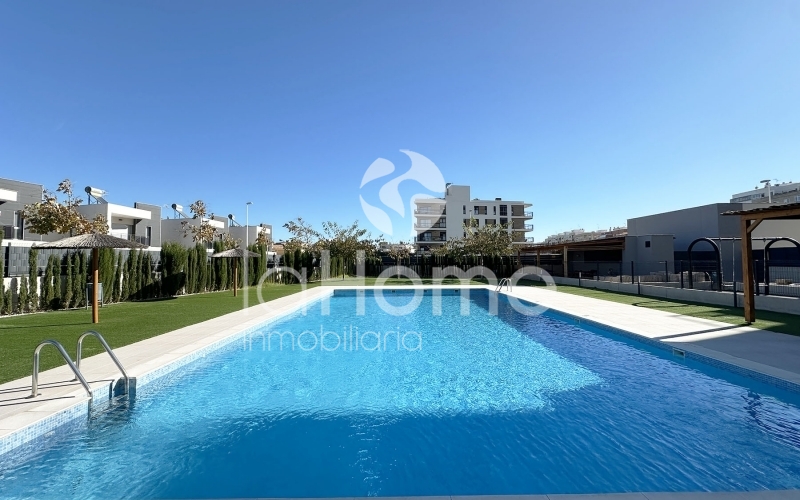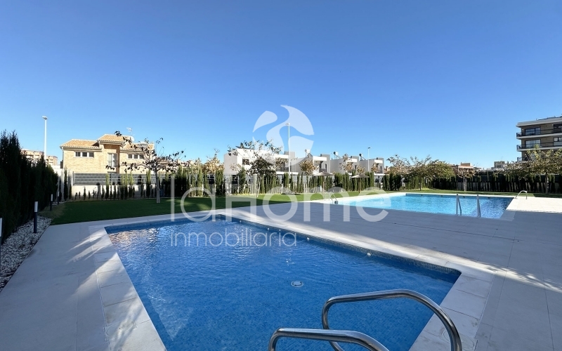 La urbanización ofrece excelentes zonas comunes, incluyendo piscina con césped natural, áreas ajardinadas, cenador, duchas y parque infantil, creando un entorno ideal para el descanso y el ocio de toda la familia. Ubicada en una zona nueva, con excelentes vistas, y a 6 min andando a la playa.