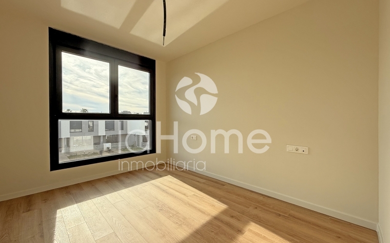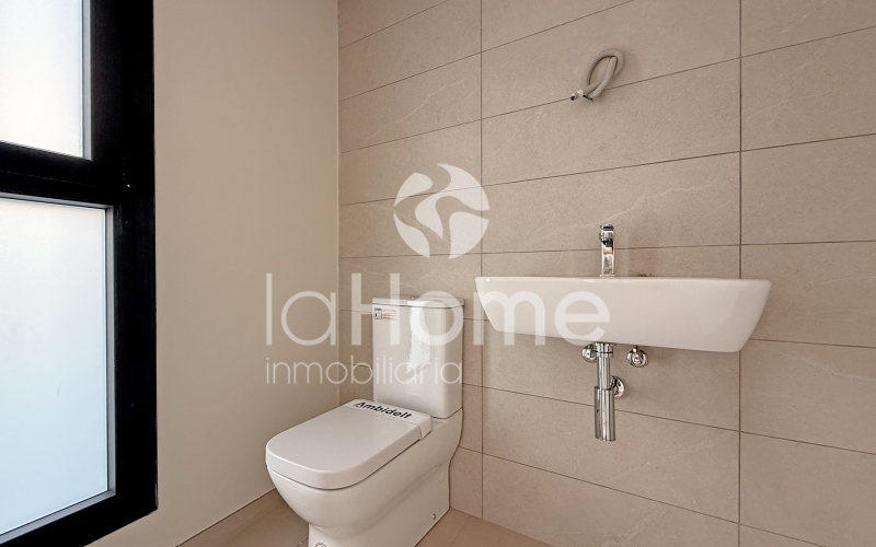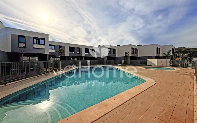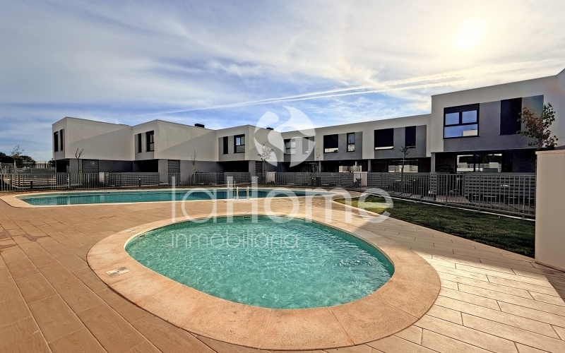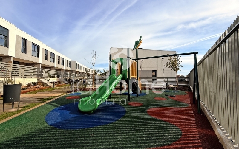 Se alquila chalet adosado de obra nueva, a estrenar, ubicado en una tranquila urbanización con zona comunitaria que incluye piscina y parque infantil, perfecta para familias.