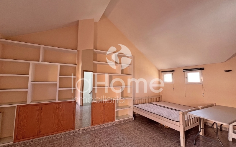 La buhardilla es un verdadero lujo, con techo alto y ventilación cruzada, que incluye un baño completo y acceso a una terraza con vistas al entorno ajardinado y a la piscina comunitaria.