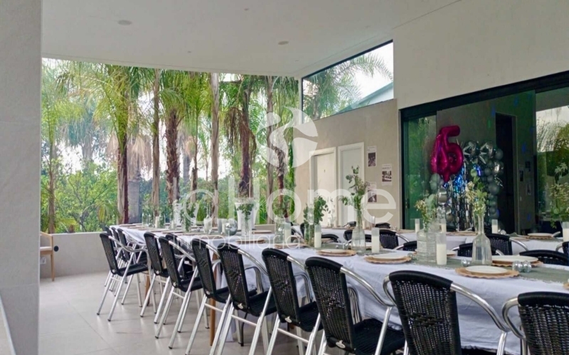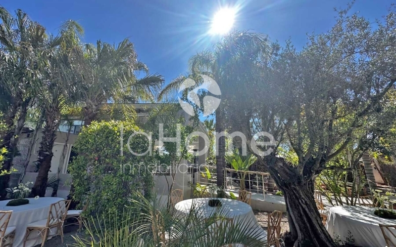 La propiedad cuenta con una terraza que se puede utilizar durante todo el año, perfecta para relajarse mientras se contempla el atractivo jardín. La impresionante piscina con forma de lago y el jacuzzi exterior son el complemento ideal para disfrutar del sol y la tranquilidad. Además, dispone de cabañas independientes para invitados, lo que añade un toque especial y versatilidad a esta propiedad única en el mercado actual.