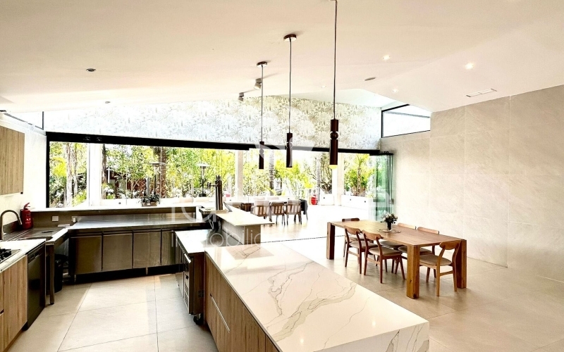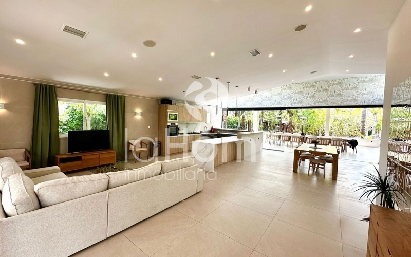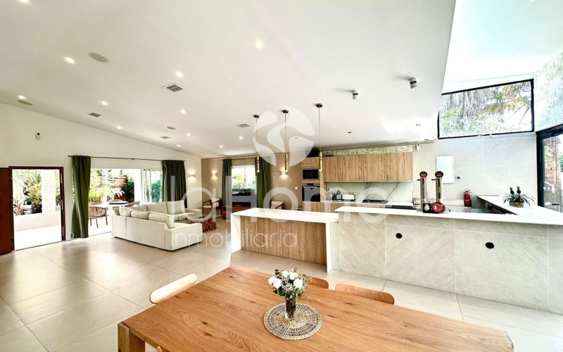 Rodeada de un entorno natural impresionante, ofrece luz natural y absoluta privacidad. Su amplio salón con cocina abierta y grandes ventanales crea un ambiente acogedor y luminoso, ideal para disfrutar de momentos inolvidables.