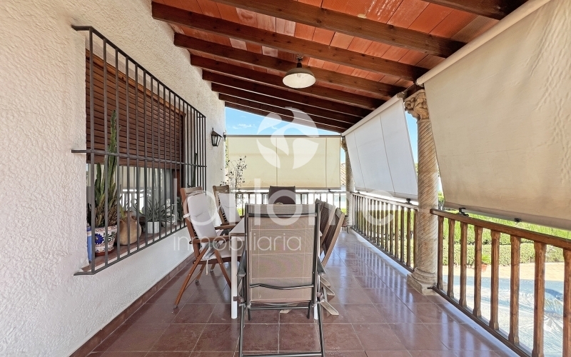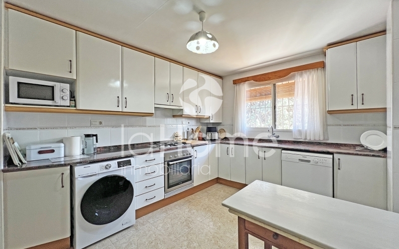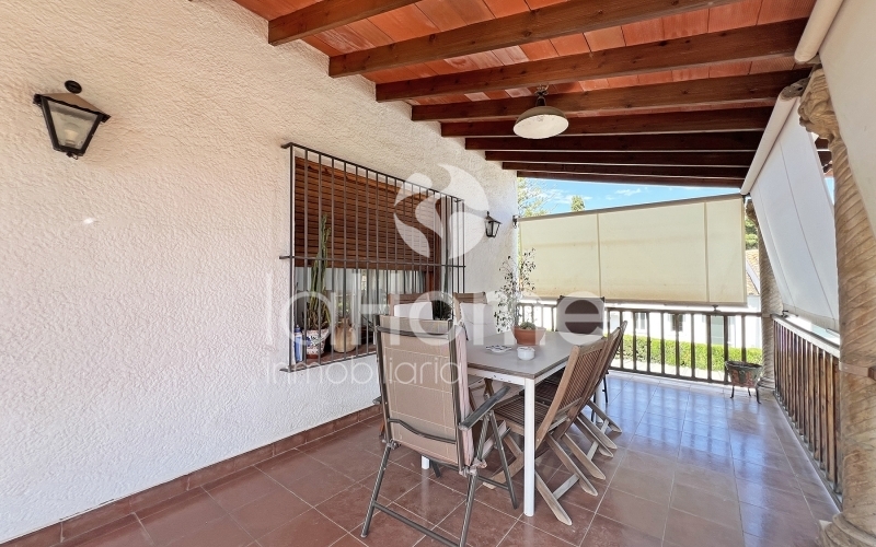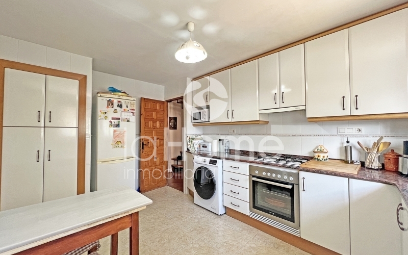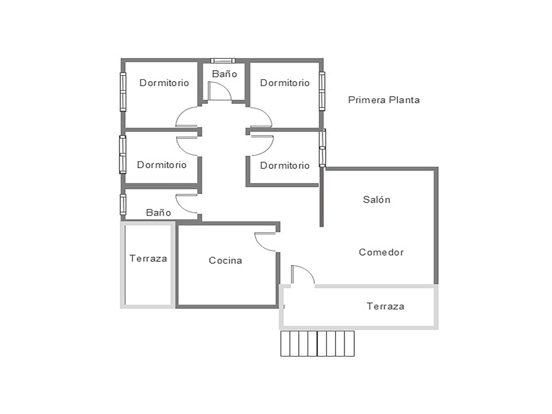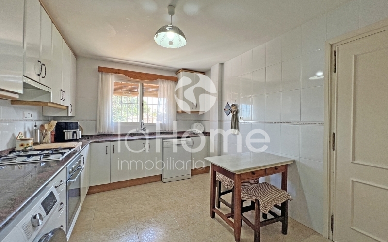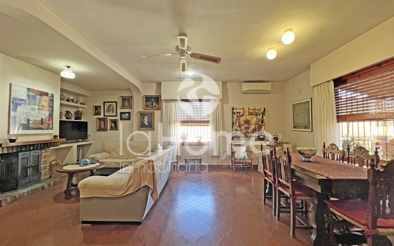 La planta principal, a la que se accede por una escalera exterior, dispone de una encantadora terraza de entrada que da paso a un amplio y luminoso salón-comedor. La cocina es independiente y cuenta con espacio para mesa de diario. En esta planta se distribuyen además cuatro dormitorios y dos baños completos.