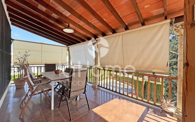 En el exterior, la vivienda cuenta con un cuidado jardín que rodea la piscina y una amplia zona de terraza perfecta para disfrutar del aire libre. Dispone además de espacio dentro de la parcela para aparcar varios vehículos y una gran zona trasera con múltiples posibilidades de uso, ideal como área de ocio, jardín adicional o zona deportiva.