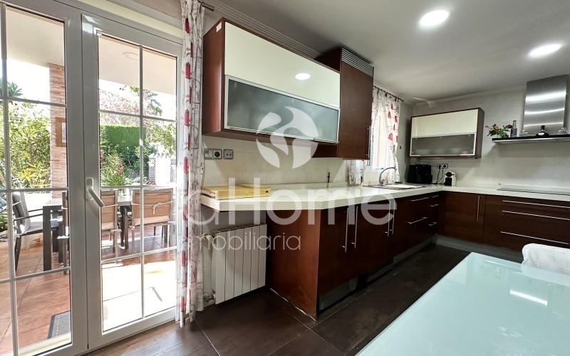 La planta baja destaca por su distribución abierta, que conecta todas las estancias: amplio salón-comedor, baño completo actualizado y cocina reformada con acceso a una terraza muy versátil. Esta terraza permite disfrutarla tanto en invierno, comiendo al sol de forma relajada, como en verano, gracias a sus espacios abiertos y a la elegante piscina, ideal para los días más calurosos en familia. Además, cuenta con paellero, trastero/lavadero y una cuidada variedad de vegetación que acompaña la vida diaria.