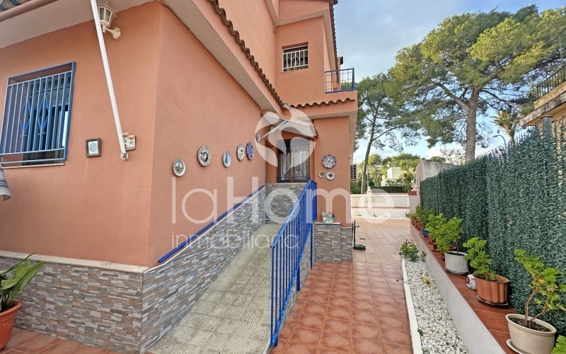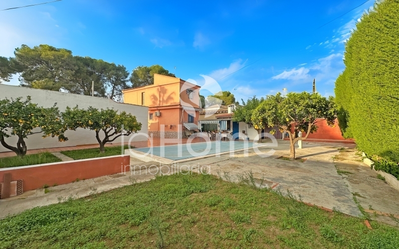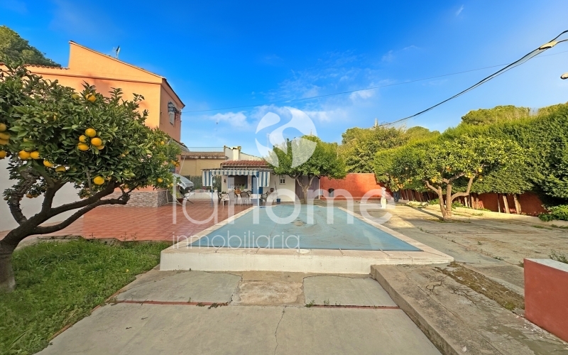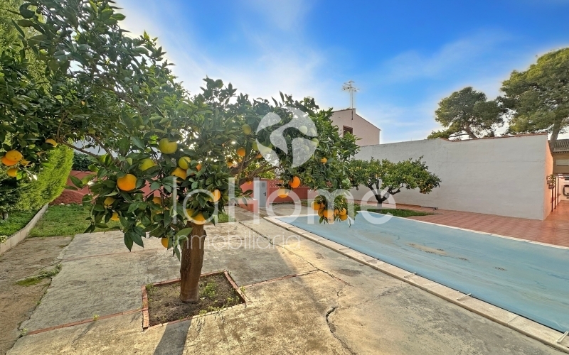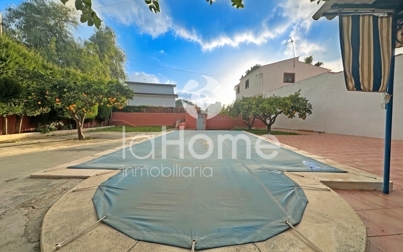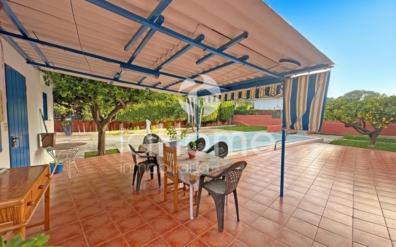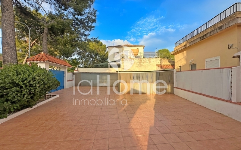 En el exterior, la parcela permite disfrutar al máximo: paellero y trastero cerrado, porche para comidas al aire libre, piscina, jardín natural y un amplio espacio de aparcamiento exterior con capacidad para cuatro vehículos.