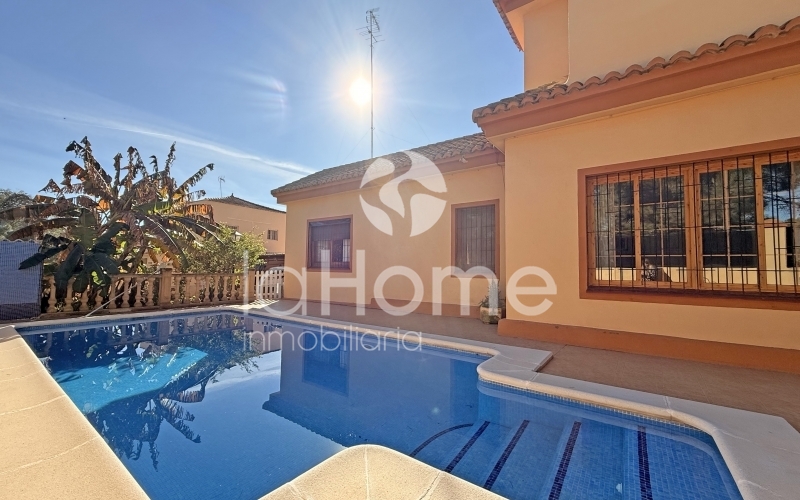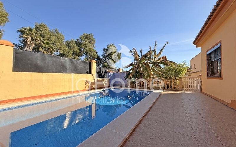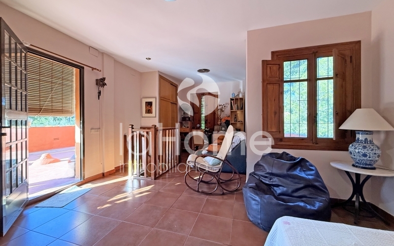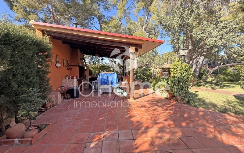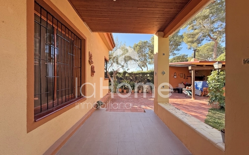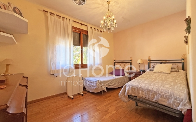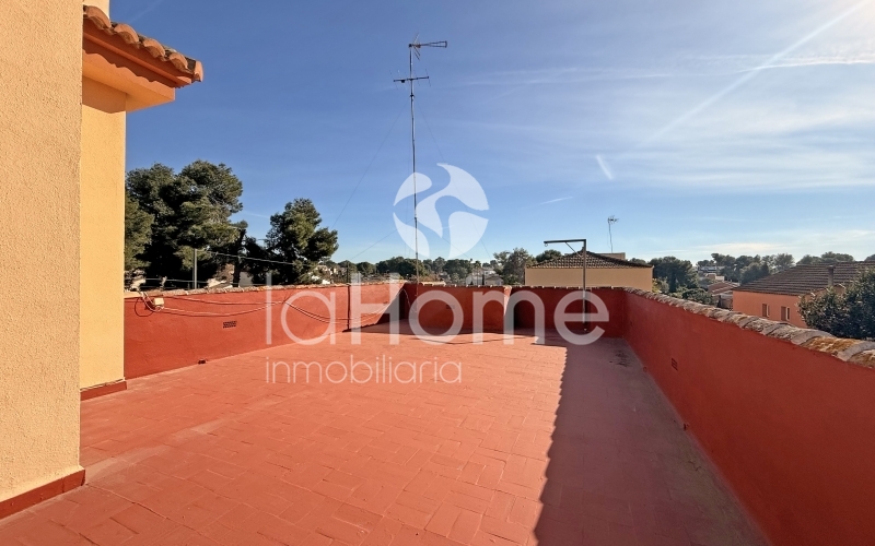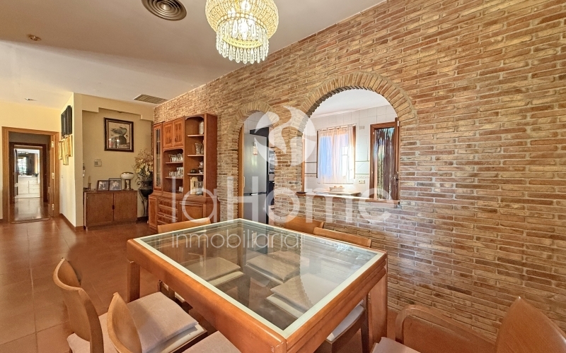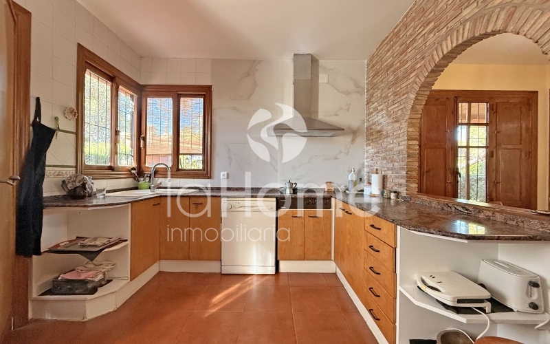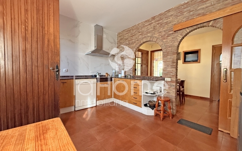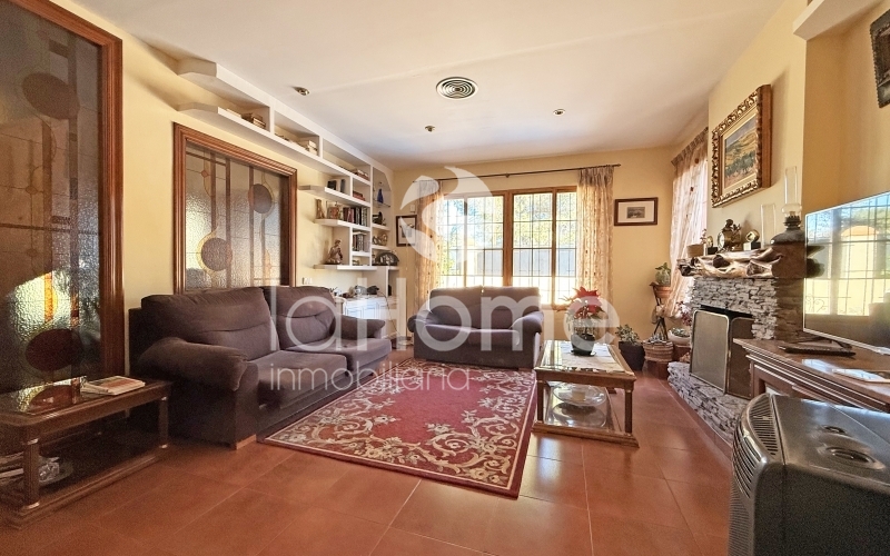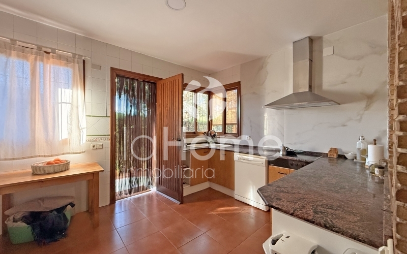 El salón-comedor es muy amplio y cuenta con chimenea, ideal para reuniones familiares o disfrutar de momentos acogedores. La cocina independiente tiene salida directa a una terraza equipada con paellero y horno moruno, perfecta para comidas al aire libre y reuniones con amigos.