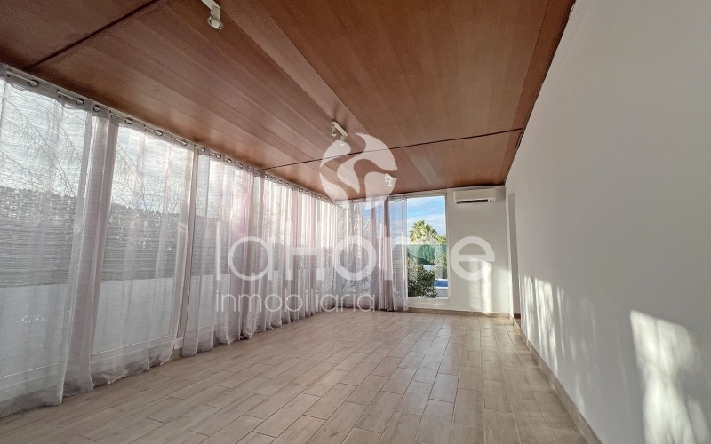 La vivienda se desarrolla en dos amplias plantas. En la planta principal, un distinguido salón comedor, lleno de luz natural, se convierte en el eje central de la vivienda. En esta misma planta se encuentran un aseo de cortesía, la suite principal con vestidor y baño privado, y una cocina independiente, funcional y luminosa, con acceso directo a la zona exterior. A continuación, una espectacular terraza acristalada, concebida como un amplio salón adicional, amplía la zona de estar y permite disfrutar del exterior durante todo el año con total comodidad