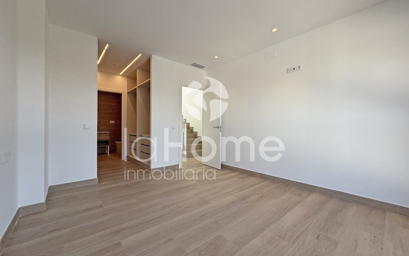 En la planta superior se distribuyen tres dormitorios muy luminosos y dos baños completos, uno de ellos en suite, que aporta un extra de comodidad e intimidad.