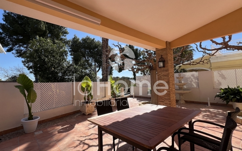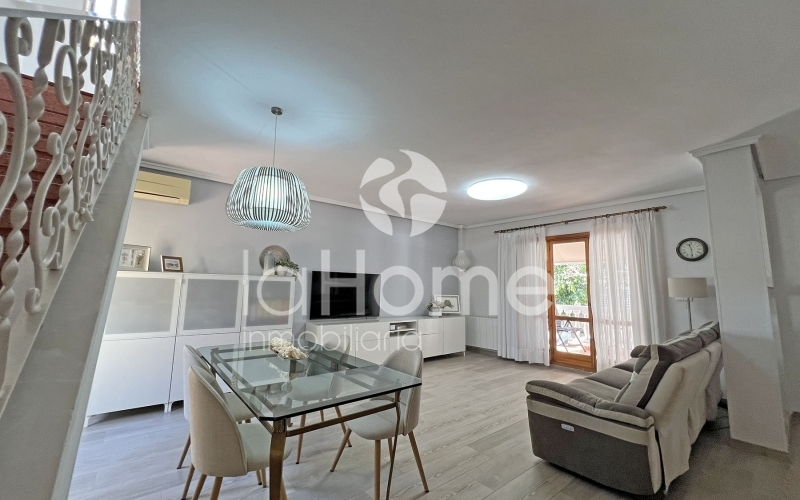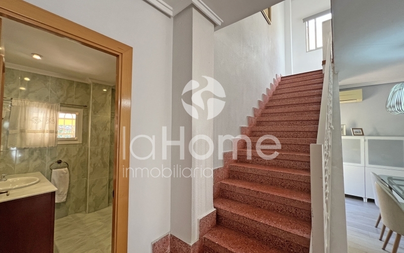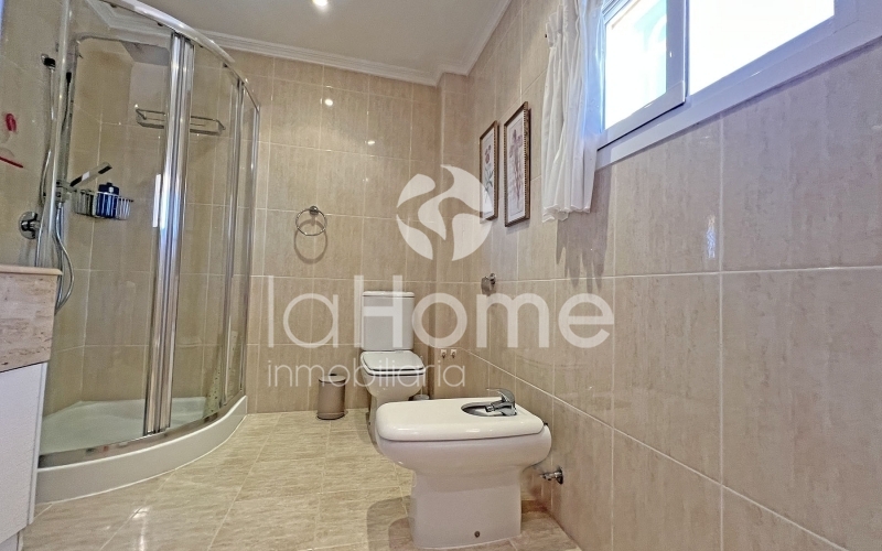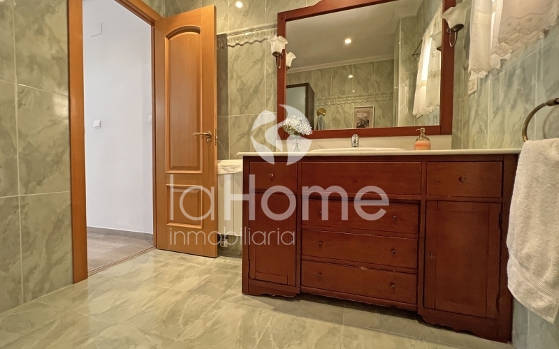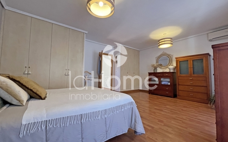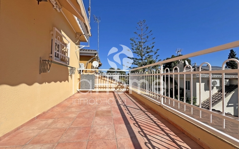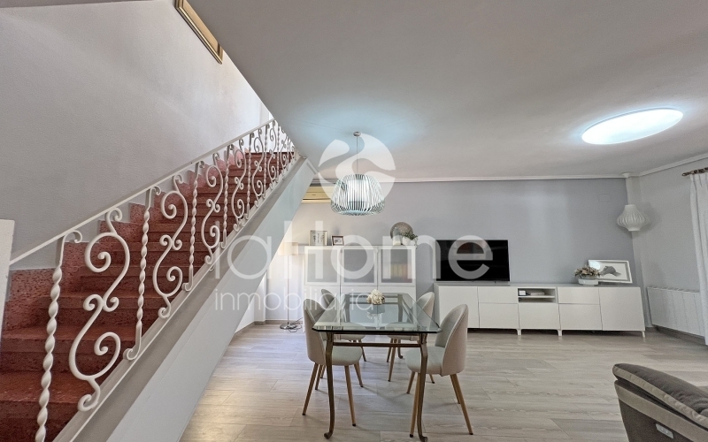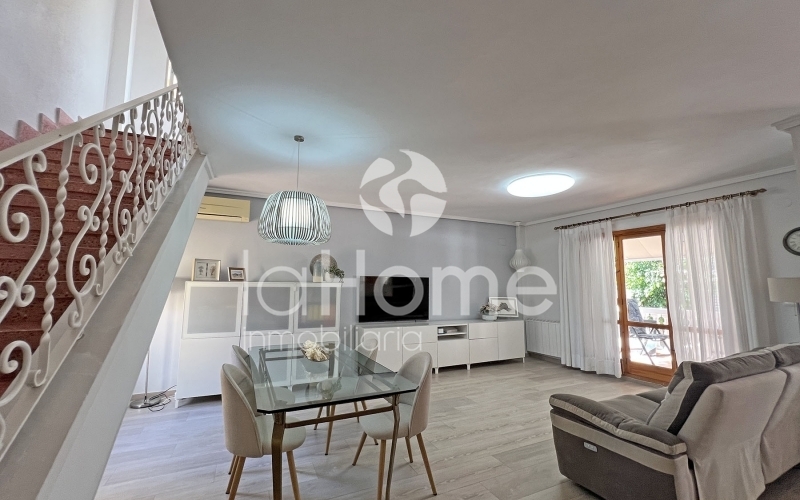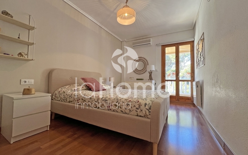 La planta superior alberga la zona de descanso, compuesta por una habitación doble y un magnífico dormitorio principal de grandes dimensiones, ampliado mediante la integración de una estancia adicional. Desde este espacio se accede a una terraza privada, perfecta para relajarse y disfrutar del aire mediterráneo. Completa esta planta un baño completo reformado con excelentes calidades y una terraza adicional.