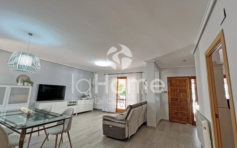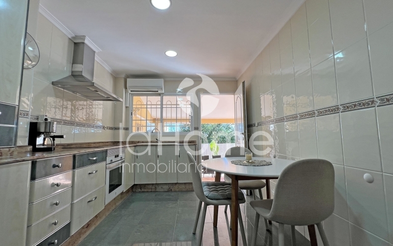 En la planta principal, un elegante salón-comedor de concepto abierto se convierte en el corazón del hogar, con acceso directo a una agradable terraza donde disfrutar del clima mediterráneo durante todo el año. La cocina office, funcional y espaciosa, ideal para los amantes de la gastronomía, conecta con una segunda terraza trasera que cuenta con zona de barbacoa y acceso directo a la cuidada piscina comunitaria.