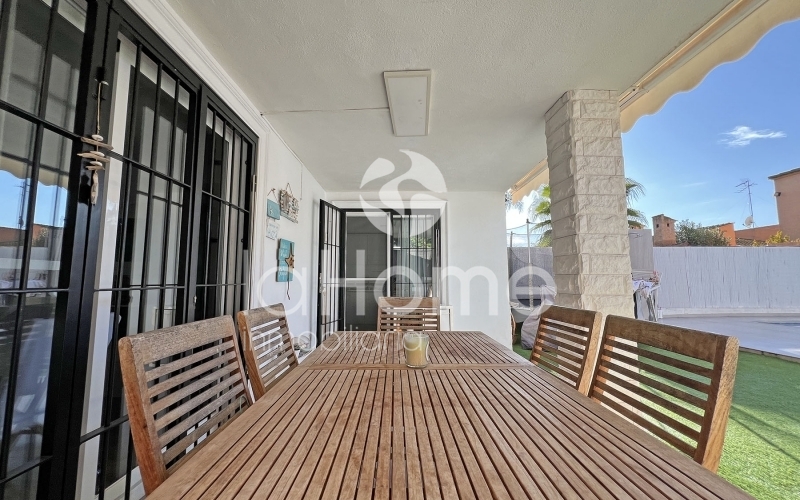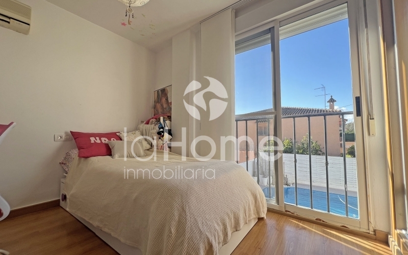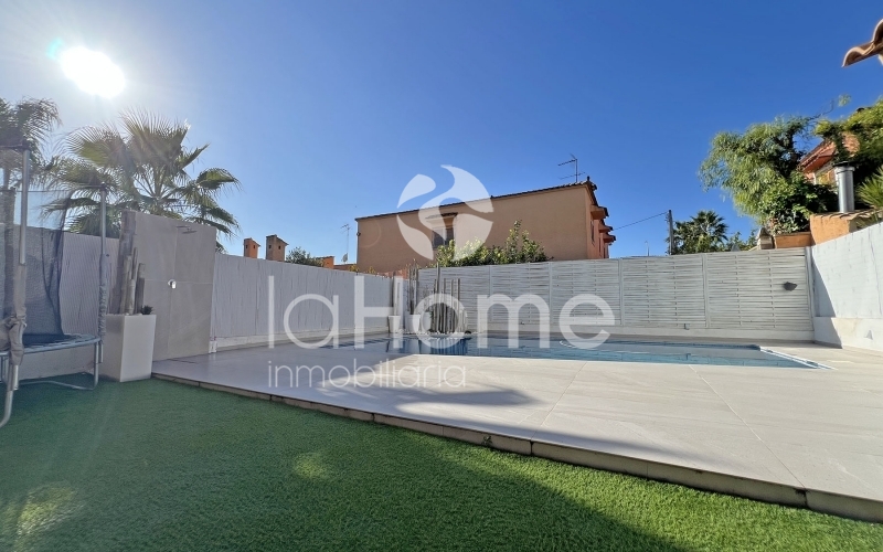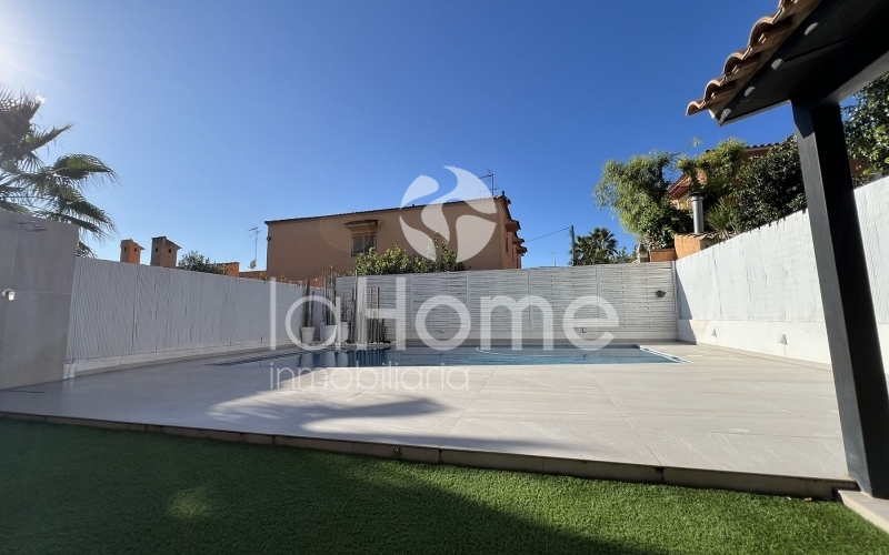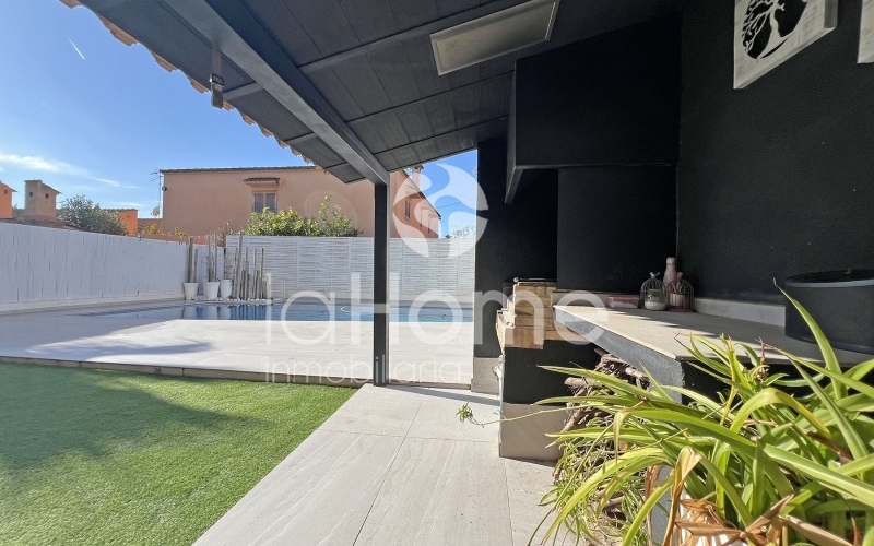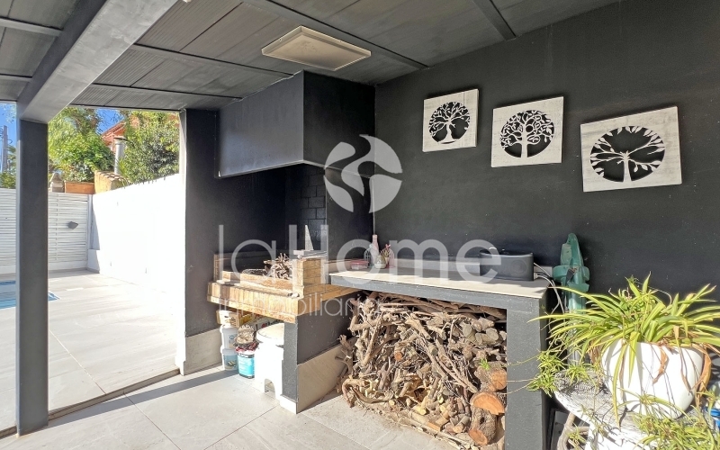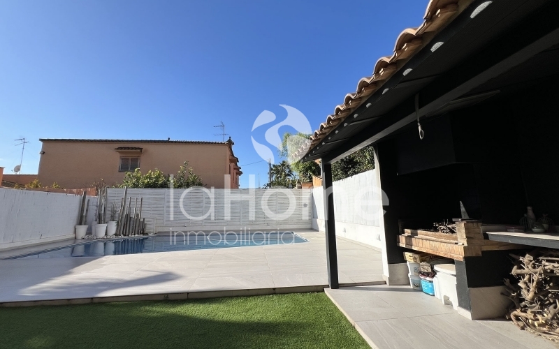 En la planta baja encontramos un amplio y luminoso salón-comedor, presidido por una chimenea de líneas contemporáneas que aporta personalidad y calidez. Los grandes ventanales permiten una agradable conexión con el exterior, dando acceso a una terraza privada y a un jardín práctico y de fácil mantenimiento, con césped artificial, ideal para disfrutar del aire libre sin grandes cuidados. La zona exterior se completa con una magnífica piscina y un espacio de barbacoa, perfectos para el descanso y los encuentros sociales en un ambiente íntimo y relajado.