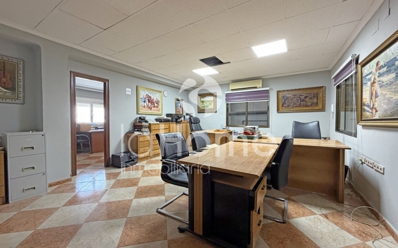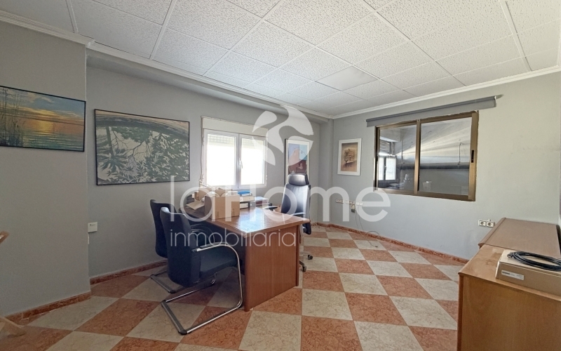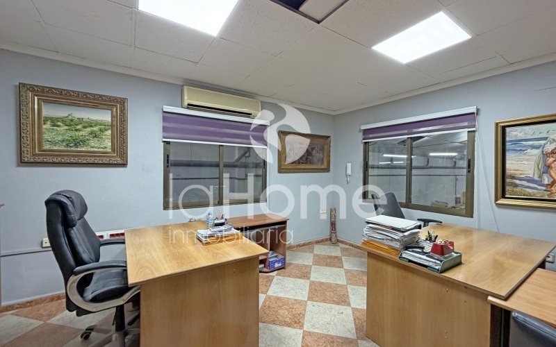 La planta baja cuenta con más de 928m2 construidos más un altillo perfecto como almacenaje y zona de trabajo, goza de gran atura para entrada de camiones, hacia un espacio diáfano, un gran altillo y una terraza exterior cubierta. Dispone también de acceso peatonal al hall con despachos y oficina. En esta planta encontramos 2 baños completos con ducha y wc y una sala equipada con aire acondicionado por split. La nave cuenta con escalera revestida en madera por donde se accede a la primera planta, donde encontramos dos despachos muy luminosos, uno con vistas a la nave y aseo de cortesía y el otro con vistas a la calle ambos con acceso privado y conectados entre si también.