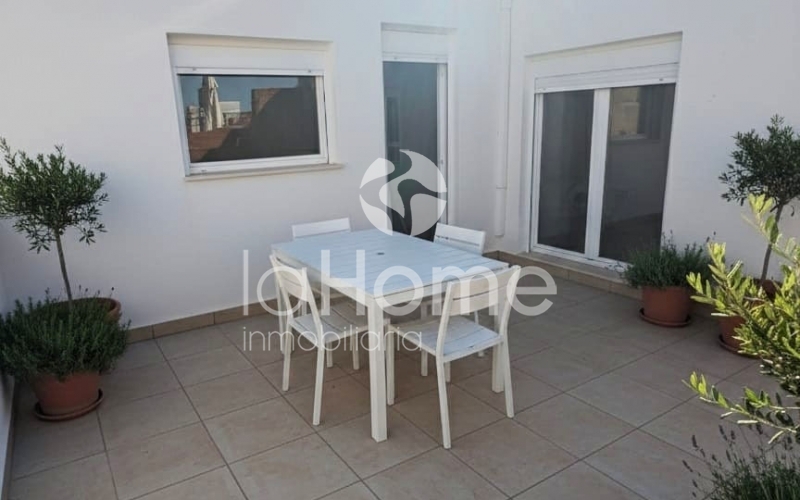 Desde la cocina se accede a una de las terrazas donde se está ejecutando el baño y el lavadero con vistas a un patio interior tranquilo al que dan otras viviendas de la manzana, aportando buena ventilación y privacidad.