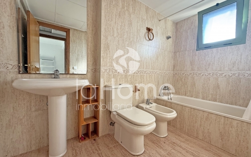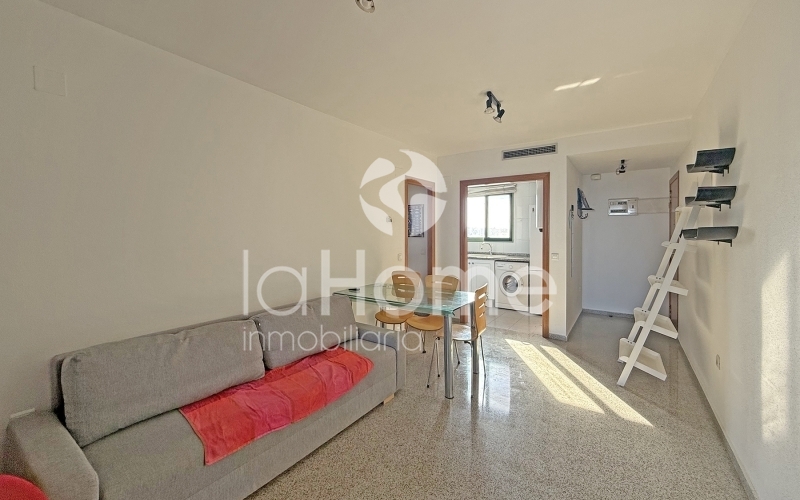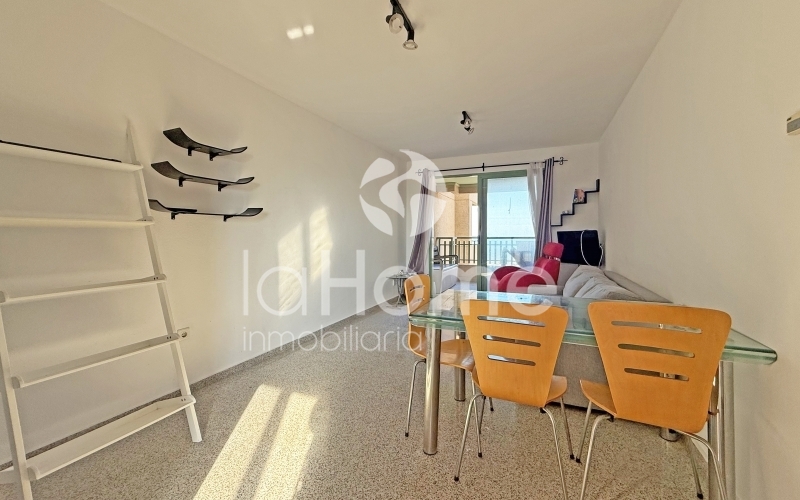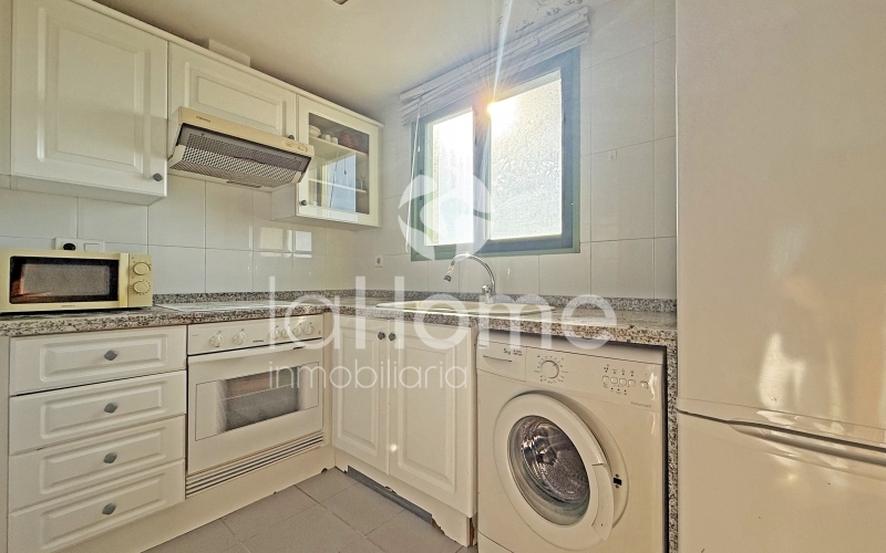 La vivienda cuenta con un luminoso salón-comedor con acceso directo a una terraza, ideal para relajarse y disfrutar de las vistas al Mediterráneo. La cocina abierta aporta amplitud y funcionalidad al espacio.
