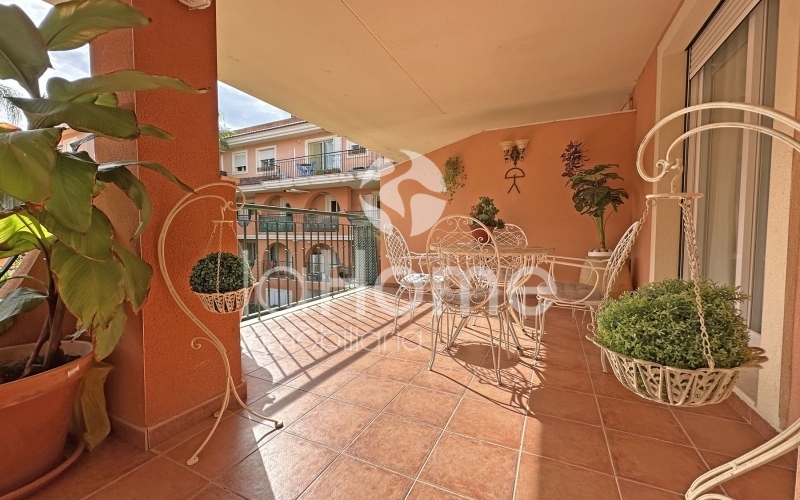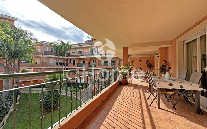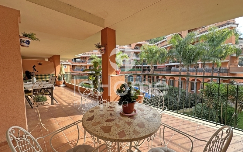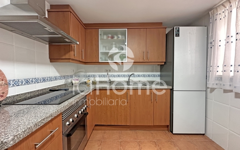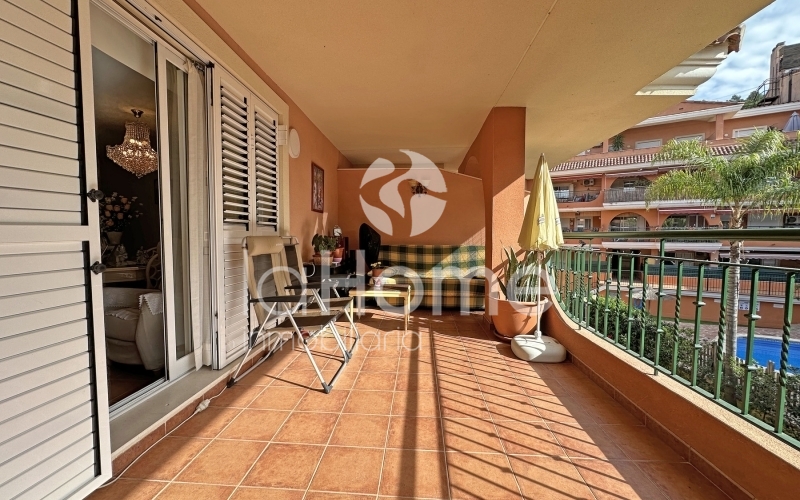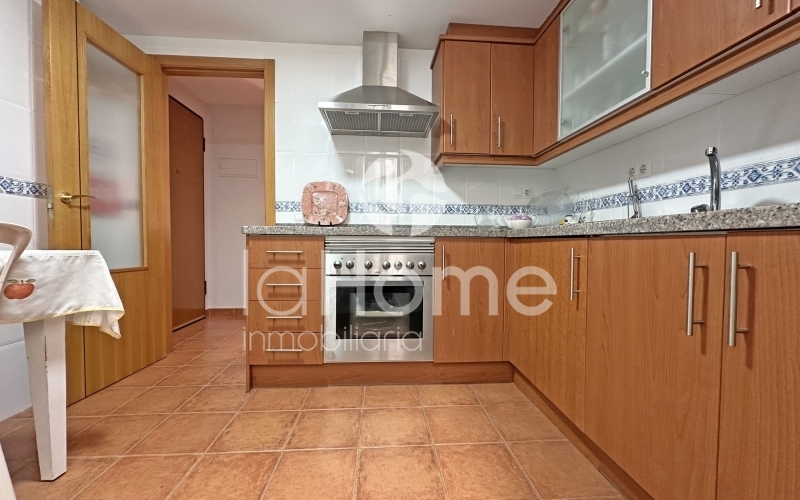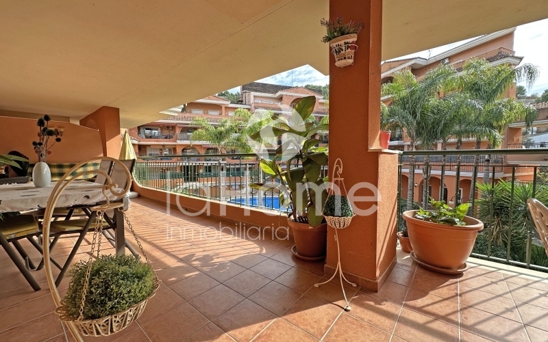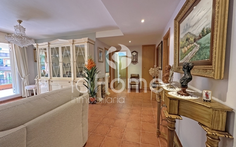 Al entrar, la vivienda transmite amplitud y calidez. A la izquierda se encuentra un espacioso salón comedor con salida directa a una gran terraza de 35 metros cuadrados, ideal para disfrutar de las vistas a la piscina comunitaria, los jardines y las montañas. A la derecha, una cocina funcional y luminosa con galería añade comodidad al día a día.