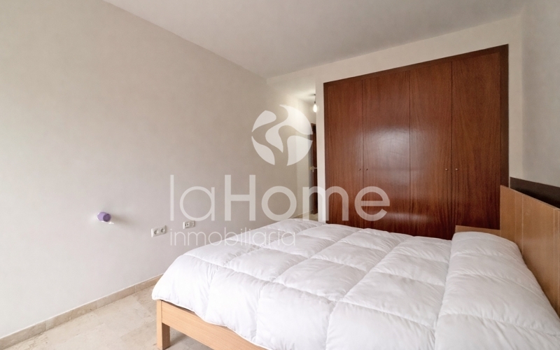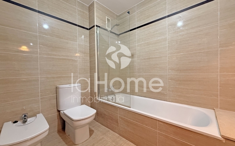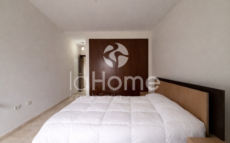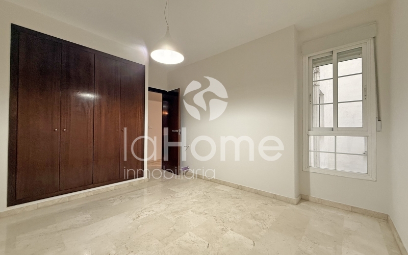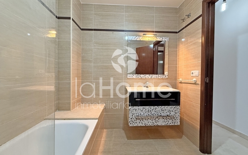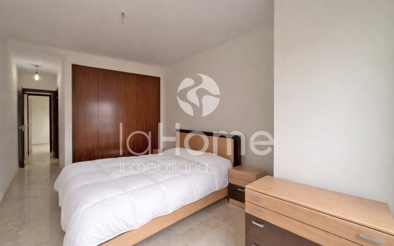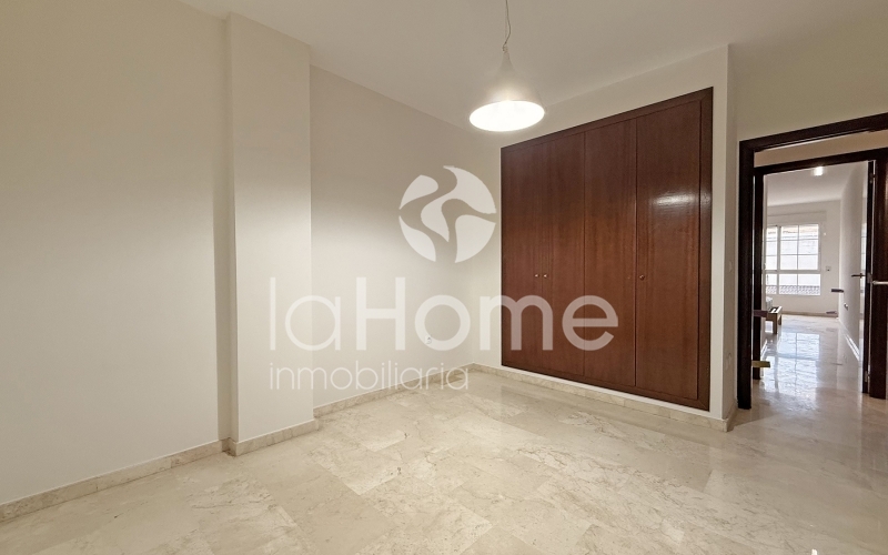 El piso se distribuye en tres habitaciones amplias, todas ellas con armarios empotrados, y dos baños completos, uno de ellos en suite dentro del dormitorio principal.